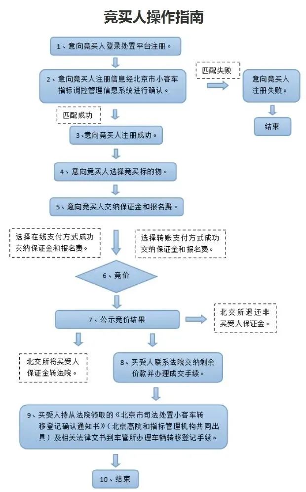 - 統(tǒng)一設(shè)定的條件為參與北京市小客車指標(biāo)調(diào)控管理信息系統(tǒng)累計(jì)搖號(hào)次數(shù)最多的競(jìng)買人成為最終買受人;多名競(jìng)買人累計(jì)搖號(hào)次數(shù)相同,則北京市小客車指標(biāo)調(diào)控管理信息系統(tǒng)注冊(cè)時(shí)間最早的競(jìng)買人為最終買受人。